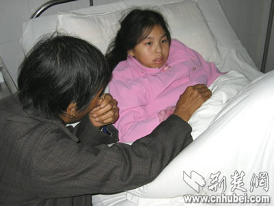 在縣人民醫(yī)院內(nèi)三科9病房里,潔白的病床上躺著一個(gè)面色蒼白、嘴唇發(fā)烏的小姑娘,她就是楊青。在楊青艱難地望過(guò)來(lái)的時(shí)候,記者的心不禁打了個(gè)顫:大眼睛沒(méi)有一絲神采!記者反復(fù)醞釀的問(wèn)候語(yǔ)哽在喉中。楊青的父母、奶奶、姑媽?zhuān)瑓s忍不住悲傷,淚如雨下!皸钋啵阃床煌?”“痛……”楊青張了張嘴,聲音弱得幾乎聽(tīng)不見(jiàn)!澳睦锿矗嬖V阿姨好嗎?”“全身都痛!睏钋囝澏吨鲁鲞@4個(gè)字后,不再開(kāi)口說(shuō)話(huà)。