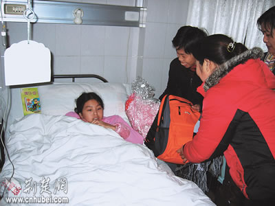 湖北日?qǐng)?bào)報(bào)業(yè)集團(tuán)工作人員看望小楊青(記者崔逾瑜 攝)