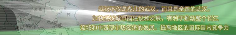 【站外鏈接】·武漢城市圈的由來·九省通衢 江城武漢·長江中游的古老明珠 鄂州·中國近代工業(yè)的搖籃 黃石·新興中等城市 孝感·湖北南大門 咸寧市·京九線上的黃金地段 黃岡·湖北明星城市 潛江·衣被天下僑鄉(xiāng) 天門