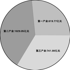 全省生產(chǎn)總值首次突破5000億元大關(guān),達(dá)到5401.71億元,按可比價(jià)格計(jì)算,比上年增長9.4%,增幅高于全國平均水平0.3個(gè)百分點(diǎn)。其中,第一產(chǎn)業(yè)完成增加值798.35億元,增長5.8%;第二產(chǎn)業(yè)增加值2580.58億元,增長9.7%。三次產(chǎn)業(yè)結(jié)構(gòu)由2002年的14.2∶49.2∶36.6調(diào)整為14.8∶47.8∶37.4,第三產(chǎn)業(yè)比重進(jìn)一步提高。