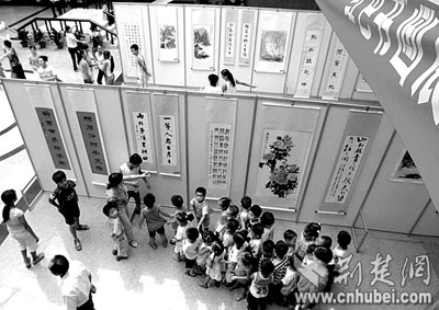 7月28日,武漢市江漢區(qū)常青街在市博物館內舉辦“紅色書畫展”。該街道30家文明單位的職工,親手繪出一幅幅丹青作品,向抗戰(zhàn)勝利60周年獻禮。