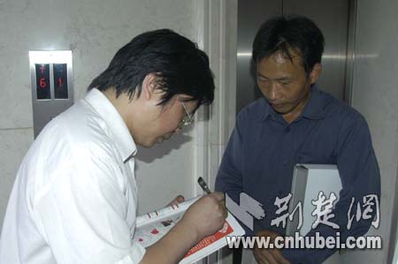 荊楚網(wǎng)副總編輯黃斌應(yīng)潛江萬先生之請簽名留戀,萬先生表示要將這份紀(jì)念帶回去