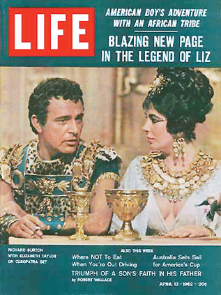 1961年,泰勒入主《埃及艷后》,20世紀(jì)福克斯開給她的報(bào)酬是當(dāng)時(shí)破紀(jì)錄的100萬美元。而她的羅曼史翻開了新的一頁——與扮演羅馬大將安東尼的理查德·伯頓陷入熱戀。