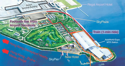 亞洲國際博覽館選址大嶼山香港國際機場附近,可通過完善的海陸空交通網(wǎng)絡,連接全球各大主要城市。渡輪服務和完備的陸路交通配套設施,將博覽館連接至珠江三角洲城市及澳門等地。亞洲國際博覽館是香港展覽業(yè)持續(xù)發(fā)展的重要建設項目,將與現(xiàn)在位于灣仔的香港國際會展中心形成互補。