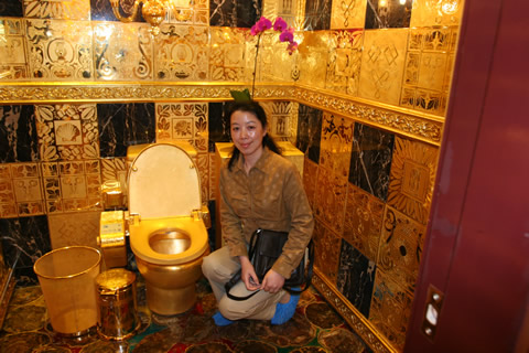 在2002年版的《吉尼斯世界紀(jì)錄》上有著這樣一條記錄:“用錢沖洗――世界上最昂貴的衛(wèi)生間由珠寶商林世榮制造,在他的中國香港商店售價240萬英鎊。它完全由金子和昂貴的珠寶制成。抽水馬桶、洗臉臺、刷子、衛(wèi)生紙盒、鏡框、墻上架設(shè)的吊燈、墻上的瓷磚和門全部都由24K黃金構(gòu)成! “這里有一點(diǎn)寫得不對,我的金廁所決不出售,我還要用它來專門注冊一個品牌,成為我們企業(yè)的象征。”林世榮在接受記者采訪時,詳細(xì)地解釋了自己對“金廁所”的感情。 現(xiàn)任香港恒豐金業(yè)科技集團(tuán)主席的林世榮說:“整個金廁所都是由我親自設(shè)計(jì)、監(jiān)督制造的,我甚至在工地呆過整整三天三夜沒有出來,可以說是傾注了極大的心血。很多人可能不了解我為什么會用這么多黃金來建造一個廁所,其實(shí)我不是為了炫耀,也不是喜歡奢侈浪費(fèi),我是在完成一個心愿。把土變成金了不起,把金變成土同樣了不起!