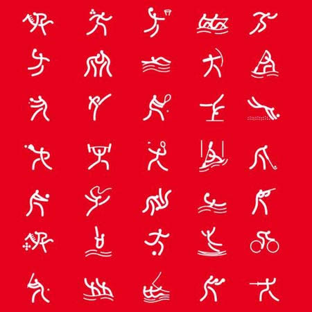 北京奧運(yùn)會體育圖標(biāo)設(shè)計包括35個圖標(biāo),分別是田徑、賽艇、羽毛球、棒球、籃球、拳擊、皮筏艇(靜水)、皮筏艇(激流)、自行車、馬術(shù)、擊劍、足球、體操、藝術(shù)體操、蹦床、舉重、手球、曲棍球、柔道、摔跤、游泳、花樣游泳、跳水、水球、現(xiàn)代五項、壘球、跆拳道、網(wǎng)球、乒乓球、射擊、射箭、鐵人三項、帆船、排球和沙灘排球。