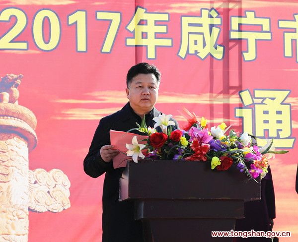 縣委書記、縣人大常委會主任石玉華宣布通山縣2017年第一批13個重點項目開工