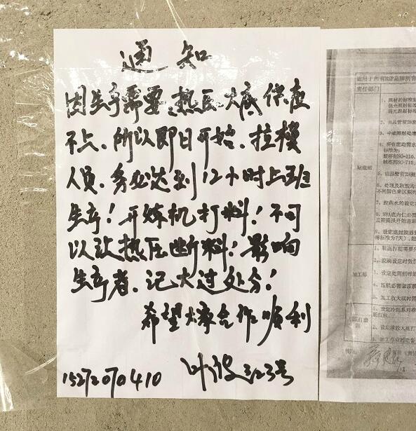 廠方張貼的趕工通知