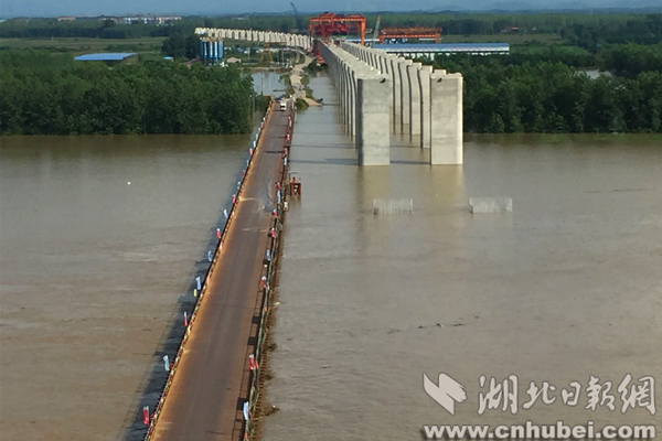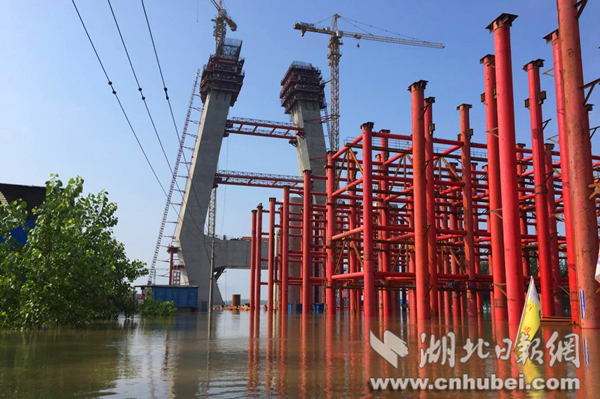 湖北日報網(wǎng)訊(全媒體記者江萌 通訊員周漓)連日來,受湖南持續(xù)暴雨、三峽水庫加大下泄流量等因素影響,長江咸寧段水位持續(xù)超警戒,湖北省重大工程嘉魚長江大橋項目工地部分區(qū)域被江水淹沒,防汛現(xiàn)場多次出險。經(jīng)科學調度指揮,5日長江1號洪峰順利通過嘉魚。截至6日晚,大橋南北主塔、橋梁預制廠及數(shù)百個墩柱均未出現(xiàn)任何損壞。