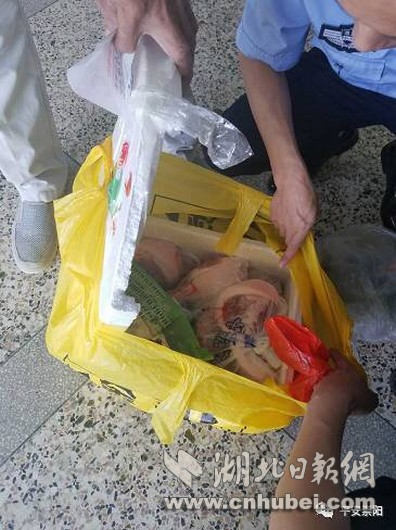 7日上午,崇陽縣天城鎮(zhèn)居民李師傅在該鎮(zhèn)下津大道路邊撿到一個白色包裹,送到崇陽縣公安局經(jīng)濟(jì)開發(fā)區(qū)派出所。為了找到包裹的主人,所長童鵬飛打開了包裹尋找線索,里面有豬肉、干筍等物品,還有一封信。