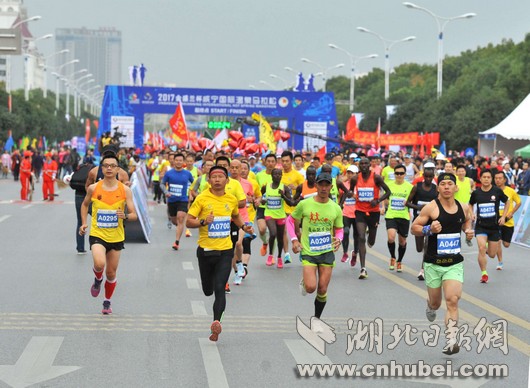 本屆馬拉松以“健康咸寧、向愛奔跑”為主題。隨著發(fā)令槍響,跑友們一路穿過(guò)咸寧大道、東外環(huán)、旗鼓大道、高新園區(qū)、金桂路、嫦娥大道、西外環(huán)、太乙大道、孟養(yǎng)浩東路、月亮灣路、麥笠山路等市區(qū)主要景區(qū)、景點(diǎn),領(lǐng)略香城泉都“中部綠心”的獨(dú)特魅力。