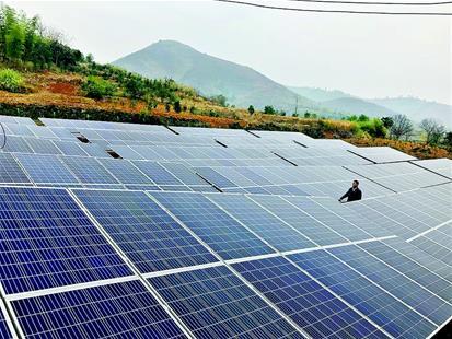 楚天都市報訊 圖為:一排排光伏板整齊安裝在山坡上