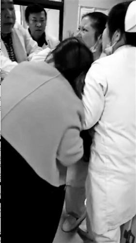 視頻顯示,女護士被醫(yī)院其他醫(yī)護人員護在一邊,靠著墻壁滑坐在地上,捂著肚子哭泣。另一名女子情緒激動,在撲向該護士時被幾名醫(yī)護人員攔住后喊著:“我要見你們院長?!?/p>