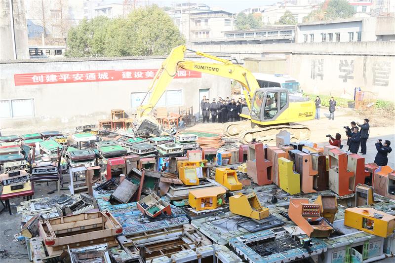 湖北日?qǐng)?bào)訊(記者陳嶼、通訊員劉建平、吳忠勇)12月20日上午10時(shí)許,隨著指揮人員一聲號(hào)令,從通城各鄉(xiāng)鎮(zhèn)收繳的152臺(tái)涉賭電子游戲機(jī)、186臺(tái)麻將機(jī)被集中銷(xiāo)毀。