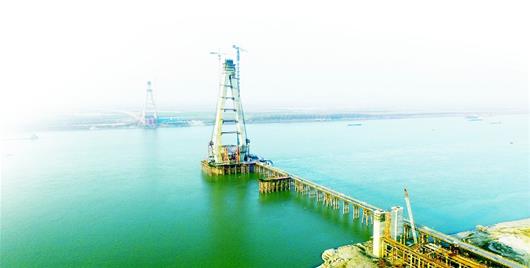 圖為:建設中的嘉魚長江大橋