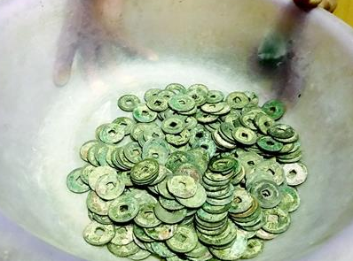 一位村民帶著記者來(lái)到挖出古幣的地基。記者看到,地基面積上百平方米,中間有個(gè)深坑。村民說,地基主人姓陳,是他的朋友。11日傍晚,一個(gè)孩子在地基上撿到一枚古幣,村民們聞?dòng)?,紛紛趕來(lái)“挖寶”。有的古幣藏在磚室里,有的埋在泥土中,其中以地基中間的坑中最多。前日,房主陳先生請(qǐng)人探測(cè),發(fā)現(xiàn)坑中還有很多古幣。