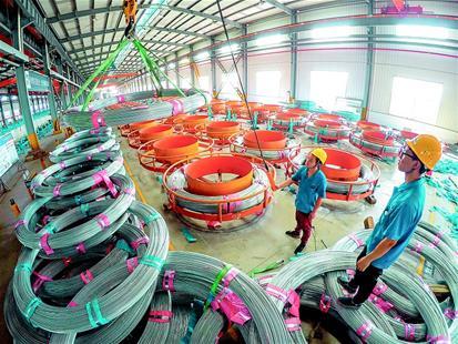 8月10日,在嘉魚(yú)經(jīng)濟(jì)開(kāi)發(fā)區(qū)官橋工業(yè)園內(nèi),湖北歐維姆纜索制品有限公司員工在制造最后一批武漢楊泗港長(zhǎng)江大橋的主纜索股。楊泗港長(zhǎng)江大橋懸索橋跨度在國(guó)內(nèi)排名第一、世界排名第二。每條主纜由271根索股組成,每根索股長(zhǎng)度為2836米、重量約62噸,每根索股由91根鋼絲組成,其鋼絲直徑更大、強(qiáng)度更高,在國(guó)內(nèi)屬首次應(yīng)用。(湖北日?qǐng)?bào)全媒記者 陳勇通訊員謝燕子攝)