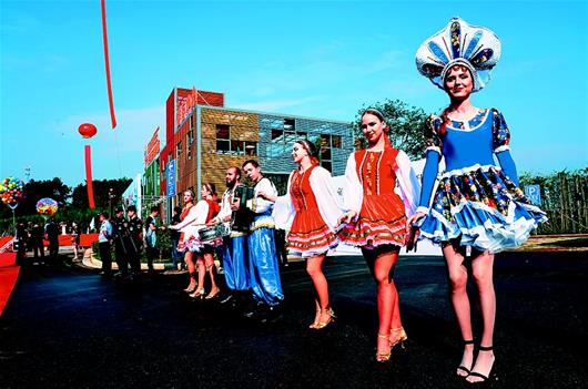 當(dāng)日,經(jīng)過(guò)一年多時(shí)間建設(shè)的“萬(wàn)畝茶園·俄羅斯方塊小鎮(zhèn)”揭開(kāi)面紗。茶園入口,彩球飛揚(yáng)、人流如織,俄羅斯少女翩翩起舞。走入茶園,齊腰的茶樹漫山遍野、油綠發(fā)亮,異域風(fēng)情的商業(yè)街、喀秋莎會(huì)客廳、四季茶溪花海令人眼前一亮。萬(wàn)畝茶園原是羊樓洞茶場(chǎng)砂子嶺分場(chǎng)所在地,連片的茶園超過(guò)萬(wàn)畝,主要用于制作青磚茶,是赤壁聞名的旅游地標(biāo)之一。重新規(guī)劃建設(shè)的萬(wàn)畝茶園,預(yù)計(jì)總投資5.4億元,擺脫原有單一茶業(yè)種植,瞄準(zhǔn)建設(shè)全球首家茶文化俄羅斯風(fēng)情主題公園。
