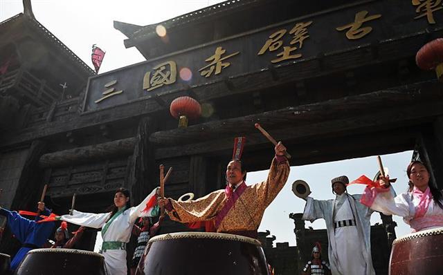 赤壁古戰(zhàn)場(chǎng)景區(qū)位于長(zhǎng)江中游南岸的赤壁市。景區(qū)內(nèi)古戰(zhàn)場(chǎng)遺址與仿漢代建筑群渾然一體,主要景點(diǎn)有赤壁摩崖石刻、周瑜雕像、拜風(fēng)臺(tái)、鳳雛庵等數(shù)十處人文景觀。該景區(qū)2008年成為4A景區(qū),2013年向5A沖刺。