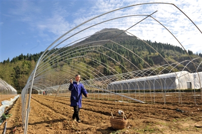 20日,崇陽(yáng)縣銅鐘鄉(xiāng)村民正在忙著搭建鋼架大棚,掀起種植玫瑰和中藥材熱潮。