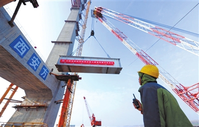 1月8日10時(shí)30分,由中鐵大橋局承建的赤壁長(zhǎng)江公路大橋首片鋼梁成功架設(shè),標(biāo)志著大橋主橋鋼梁架設(shè)施工正式啟動(dòng),全面進(jìn)入上部結(jié)構(gòu)施工階段。