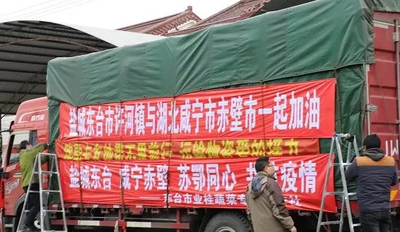 “同志,您好,我們是江蘇鹽城東臺的,我們拖運來了捐贈蔬菜,請問……”
