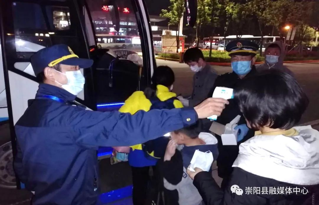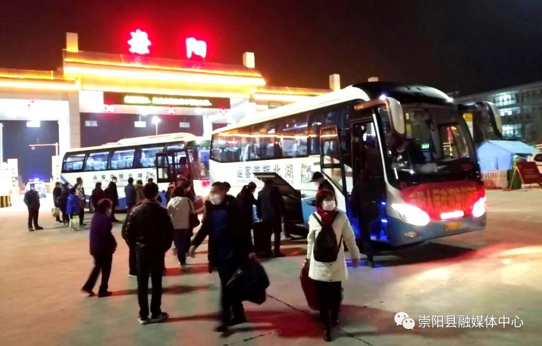 當(dāng)晚,載著32名返崗員工的2臺大巴從湖南岳陽東站起程,21點(diǎn)10分順利返回崇陽,這些返崗員工在采取相應(yīng)防疫措施后將陸續(xù)走上復(fù)工崗位。