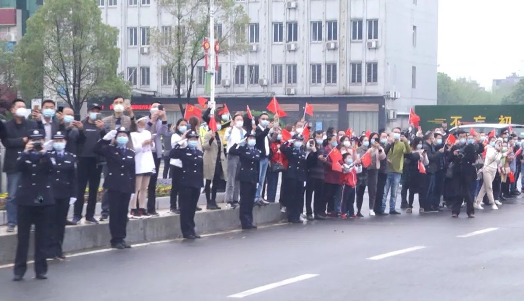 沿途,“千里逆行助崇陽 平平安安回家鄉(xiāng)”“風(fēng)雨與共 守望相助 攜手奮戰(zhàn) 感恩有你” “云南援崇醫(yī)療隊醫(yī)護人員恩情 崇陽人民永久于心”等紅色條幅分外鮮艷,街道兩旁的群眾揮舞著國旗,為支援崇陽的云南醫(yī)療隊送別。人群中,“謝謝白衣天使”“英雄一路順風(fēng)”的聲浪此起彼伏,群眾用最真誠樸實的話語表達了對白衣天使們由衷地感謝。
