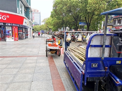 60多歲的李爹爹常年開(kāi)著三輪車(chē)在城區(qū)各處賣(mài)水果,這幾天在賣(mài)甘蔗,在小區(qū)門(mén)口賣(mài)了一會(huì)兒后他又來(lái)到中商百貨附近。李爹爹說(shuō),現(xiàn)在街上人少,生意沒(méi)有以往好。