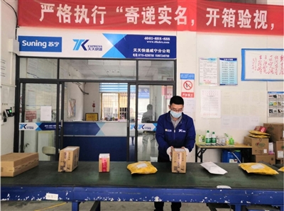 周勇舉了一個(gè)例子:一個(gè)包裹從外省發(fā)往咸寧,在每個(gè)分揀中心都要進(jìn)行消毒。配送之前,還會(huì)再次消毒。