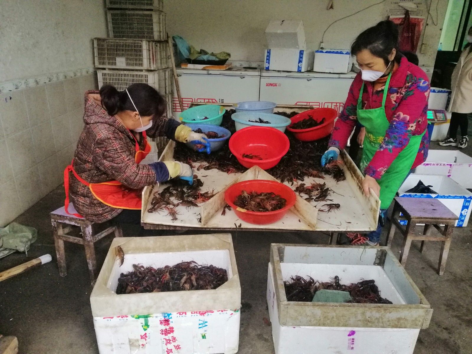 在官塘驛鎮(zhèn)泉口村神泉湖種養(yǎng)殖專業(yè)合作社,負(fù)責(zé)人童聰正在忙著將收購來的小龍蝦進(jìn)行等級(jí)分揀打包,準(zhǔn)備發(fā)往全國各地。該合作社現(xiàn)在每天小龍蝦成交量3000斤左右,高峰期保持在1.5萬斤,主要銷往江浙滬粵。