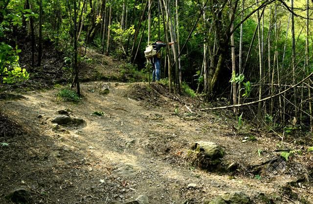 從烈士陵園旁沿著彎彎曲曲的山路,艱難地穿梭在險(xiǎn)峻的山間,探尋曾經(jīng)發(fā)生過故事的革命之地。經(jīng)過“百步十八彎”“愛泉”“云天井”,歷經(jīng)一個多小時(shí)到達(dá)“虎歇坪”,終見紅艷艷的杜鵑花,開在崎嶇險(xiǎn)路兩旁。