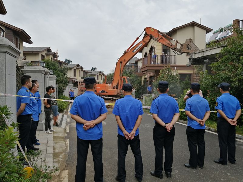 據(jù)介紹,本次拆除的2處違章建筑均為亂搭建,是業(yè)主在未取得相關(guān)手續(xù)的情況下,擅自改變房屋結(jié)構(gòu)搭建而成,2處違章建筑存在極大的安全隱患。咸安區(qū)城市管理執(zhí)法局在今年多次上門下達(dá)整改通知書,但當(dāng)事人仍抱僥幸心理,拒不整改?!八麄冇馄谌晕绰男胁鸪x務(wù),所以我們依法對(duì)其進(jìn)行了強(qiáng)制拆除?!毕贪矃^(qū)城市管理執(zhí)法局相關(guān)負(fù)責(zé)人介紹,他們當(dāng)天出動(dòng)了100余名執(zhí)法人員,完成了兩處違章建筑的拆除工作。