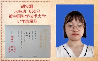 8月12日,從省招辦傳來喜訊:來自全國各地的129名“天才少年”來合肥參加中國科學(xué)技術(shù)大學(xué)“少年班”復(fù)試的角逐,共計(jì)錄取48名考生。湖北僅錄4人,咸高獨(dú)占3人!余亦可、陳龍、胡安雅同學(xué)經(jīng)過嚴(yán)格挑選,脫穎而出,被中科大“少年班”錄??!吳書恒同學(xué)被中科大“少創(chuàng)班”錄??!郭雷、劉瑞同學(xué)被空軍航空大學(xué)錄??!周子吉吉、饒冶、朱紫珩、趙子廉、施熠被清華大學(xué)、上海交大、復(fù)旦大學(xué)、浙江大學(xué)錄取。