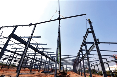 10月13日,咸安經(jīng)濟(jì)開(kāi)發(fā)區(qū)華寧防腐科技產(chǎn)業(yè)園二期項(xiàng)目,工人們正在吊裝鋼架廠房。