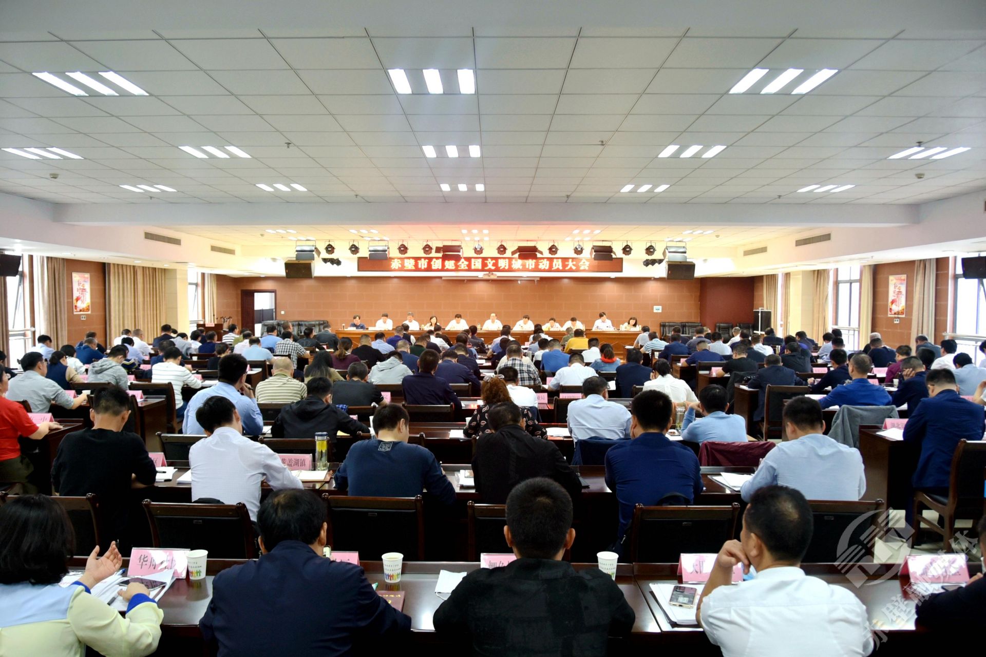 ▲赤壁市召開(kāi)創(chuàng)建全國(guó)文明城市動(dòng)員大會(huì)現(xiàn)場(chǎng)