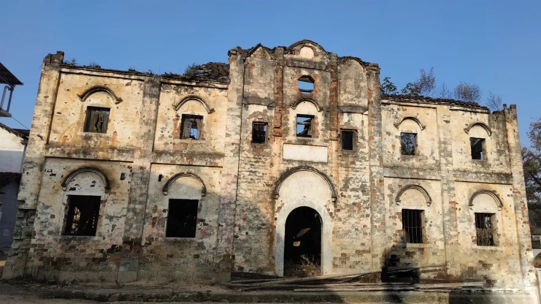 不過,在王家畈村口依然存留著一所民國學(xué)堂建筑,雖已殘損,但墻體保存尚好,于寂然中屹立。