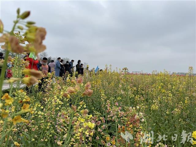 油菜花有普通的黃色、橙黃、桃紅、紫紅等顏色,游客擠在田埂上拍照。青山鎮(zhèn)在菜地里搭起了舞臺(tái),舉辦首屆七彩油菜花節(jié)開(kāi)幕式,提琴戲、腰鼓等好戲連臺(tái),《我家在崇陽(yáng)》歌聲在花海中回蕩。