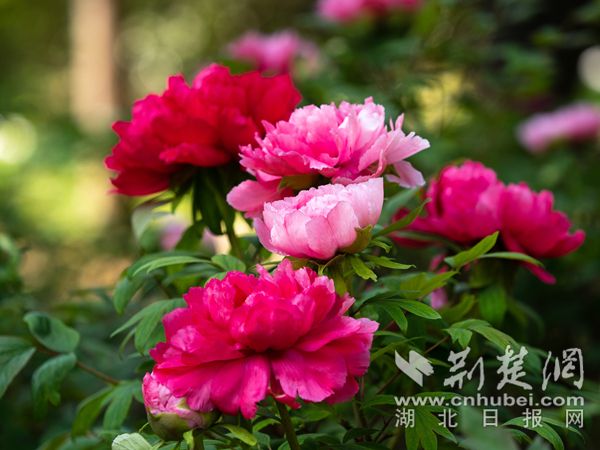 清明期間,武漢植物園內(nèi)3000株牡丹全部盛放,驚艷國色等您來賞?!畽血{子’‘島錦’‘富貴滿堂’等牡丹清香四溢,風(fēng)姿綽約,盡顯牡丹的“國色天香”。武漢植物園牡丹園以保育展示江南品系、西南品系、中原品系和外國品系為主,目前保育牡丹3000株,有紅、粉、紫、墨、黃、白等花色,單瓣、荷花、繡球、臺閣等花型。色澤淡雅的保康牡丹輕逸出塵,一展牡丹的婉約風(fēng)姿。日本牡丹‘島錦’一花雙色,花朵在紅白相間,為少見的復(fù)色牡丹。還有墨色的‘珠光墨潤’,不僅色彩驚艷,花瓣還有著綢緞般光澤,為黑牡丹中的佼佼者。綠牡丹‘綠幕隱玉’如翡翠瑩潤通透,堪稱花中珍品。此外,園內(nèi)國內(nèi)外名品薈萃,展示牡丹的絕代風(fēng)采。