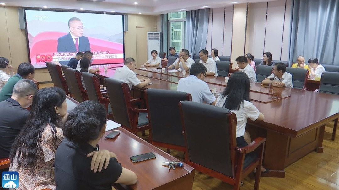 在縣交通運(yùn)輸局9樓會議室,全體黨員干部正在集體收看慶祝中國共產(chǎn)黨成立100周年大會電視直播。直播開始后,大家全神貫注地盯著屏幕,生怕錯(cuò)過一個(gè)細(xì)節(jié)。