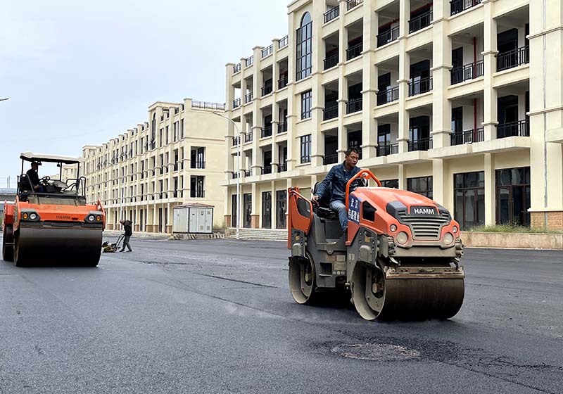 10月18日,浮山街道浮山社區(qū)黨群服務中心附近的路面刷黑施工現(xiàn)場,瀝青攤鋪機和壓路機來回穿梭。隨著施工的推進,一條寬闊平坦的瀝青路面呈現(xiàn)在眼前。