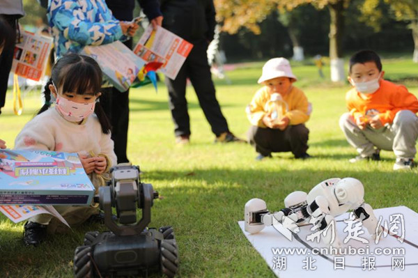 “機器人是在做瑜伽嗎?它們還會跳雙人舞!”隨音樂舞蹈的機器人令小朋友們頗感新奇。華中農(nóng)業(yè)大學(xué)博物館與中國地質(zhì)大學(xué)逸夫博物館展出的動物標本、恐龍化石與礦石則吸引了眾多游人的注意力。人們駐足在展位前,領(lǐng)略科學(xué)的美麗。