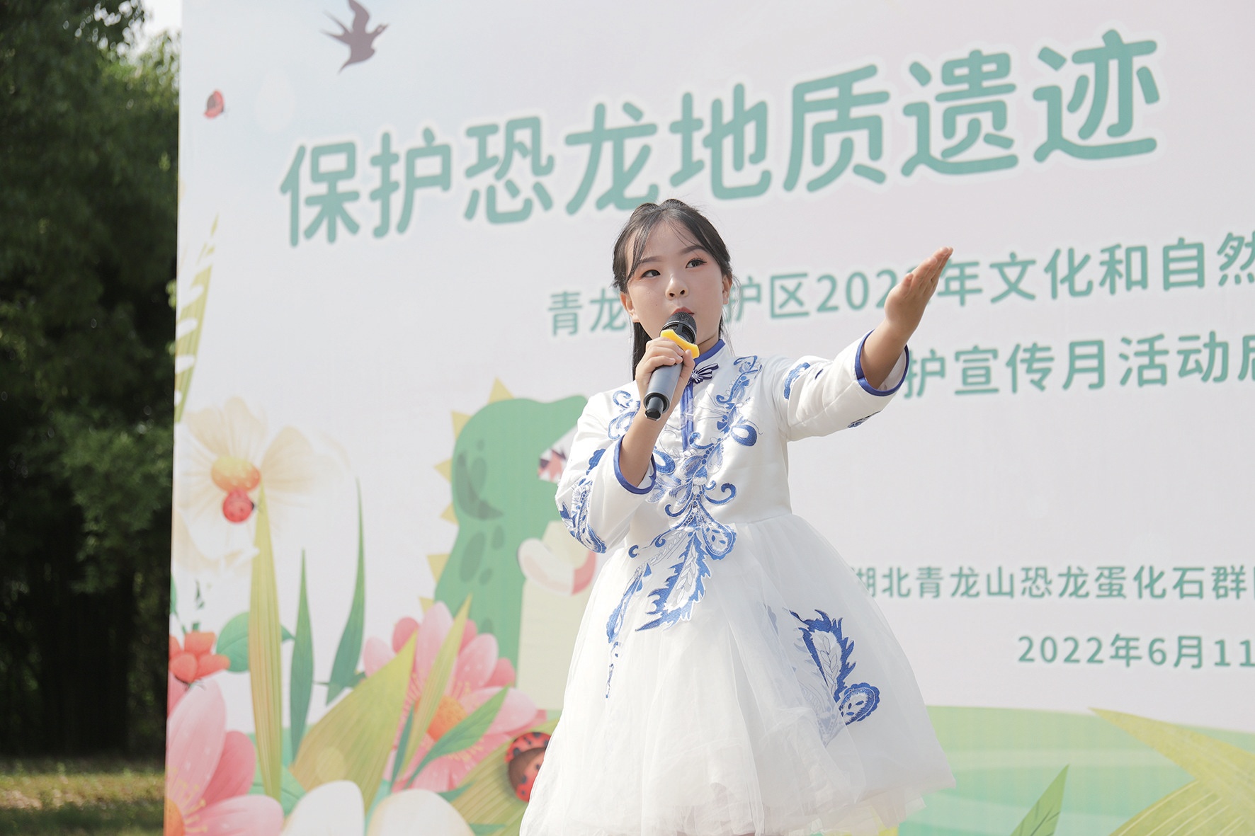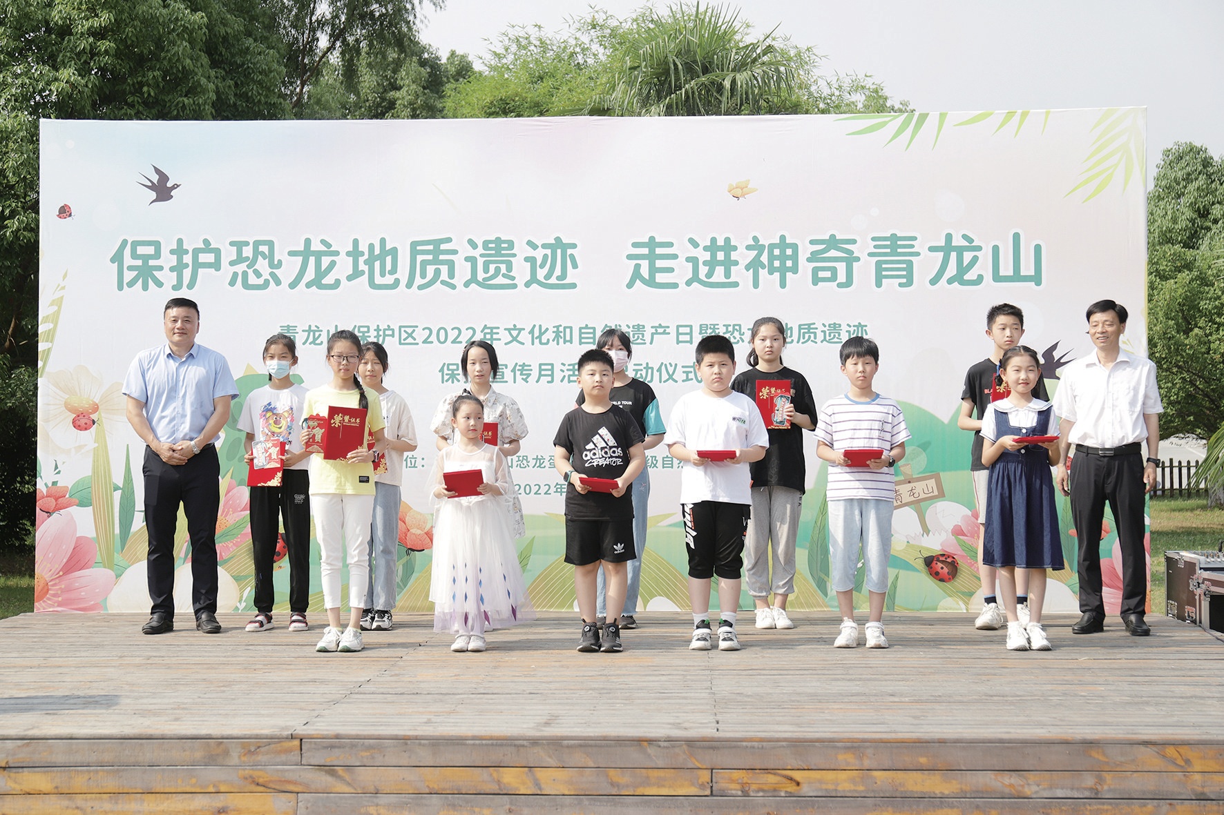 “讓我們行動起來,爭做恐龍地質(zhì)遺跡保護(hù)的小衛(wèi)士,像保護(hù)眼晴、愛惜生命一樣保護(hù)好恐龍地質(zhì)遺跡,不偷挖、盜挖恐龍蛋,不交易、買賣恐龍蛋……”小記者代表李華博、李坤陽現(xiàn)場發(fā)出保護(hù)文化和自然遺產(chǎn)倡議,希望現(xiàn)場的小記者們行動起來,爭做恐龍地質(zhì)遺跡保護(hù)的小衛(wèi)士、恐龍地質(zhì)遺跡保護(hù)的宣傳員和現(xiàn)代科學(xué)知識的傳播者,傳播珍愛地球,保護(hù)環(huán)境的理念,自覺踐行“綠水青山就是金山銀山”的發(fā)展理念,共建人與自然和譜共生的美麗家園。