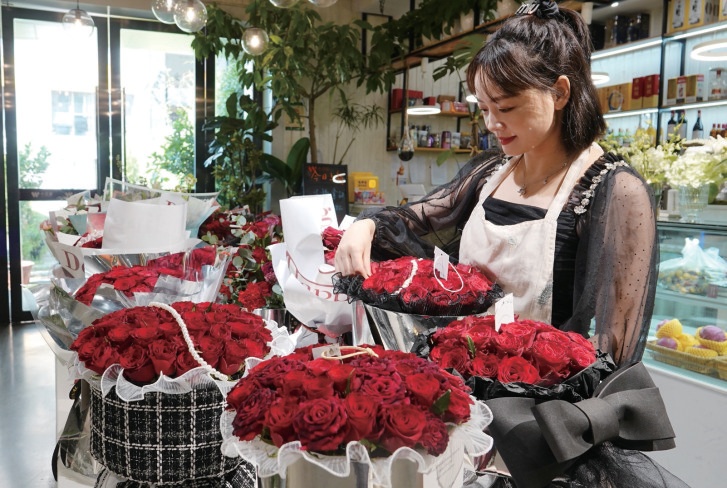 據(jù)這些花店老板介紹,訂花群體普遍為二三十歲的年輕人,送花給戀人,增加儀式感。同時,也有一些女性到花店自行購買鮮花擺放在家里,增添浪漫節(jié)日氛圍。