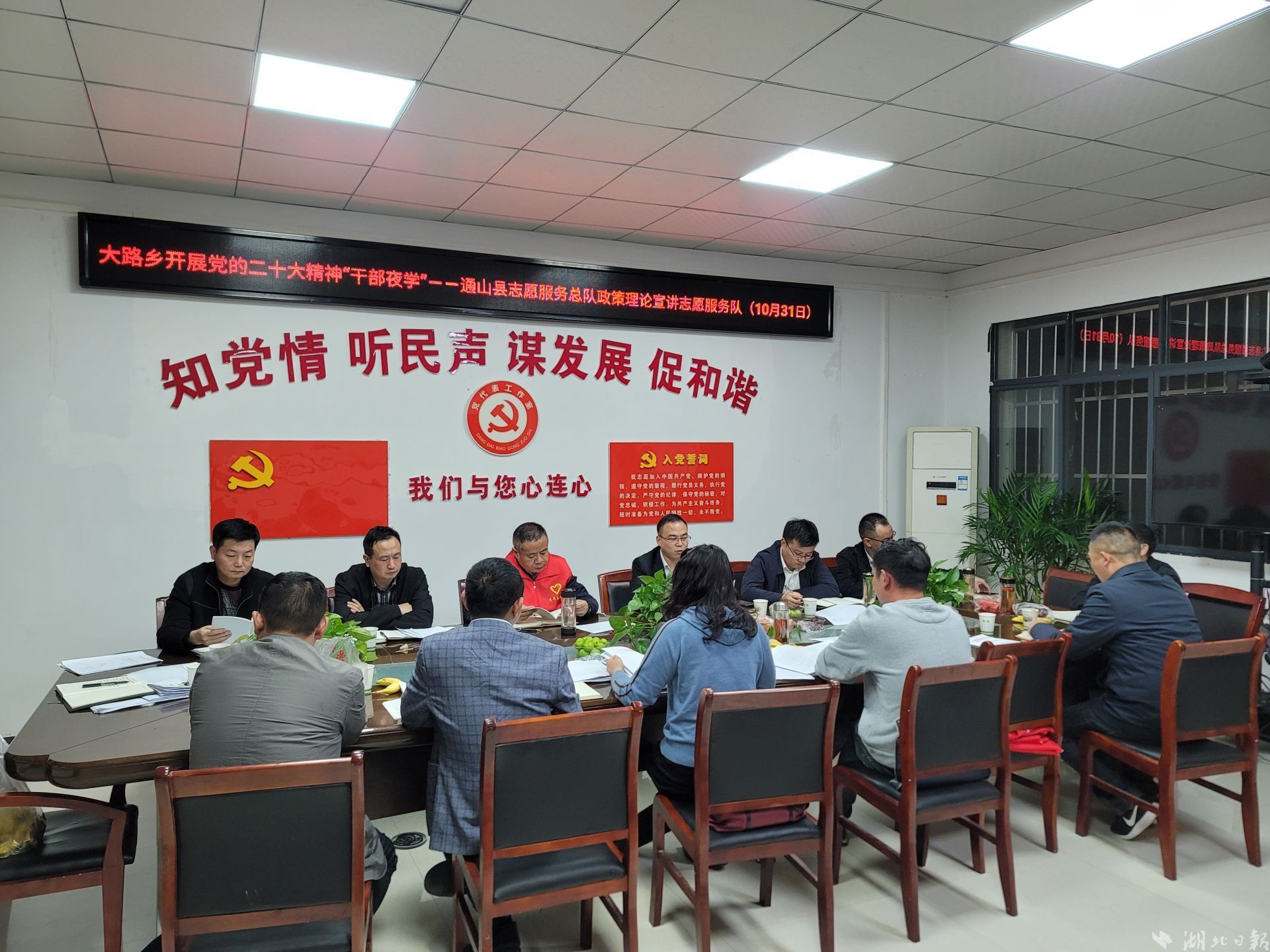 10月27日晚,通山縣委理論學(xué)習(xí)中心組率先在全縣開設(shè)“夜學(xué)班”,拉開了全縣黨員干部“夜學(xué)”帷幕。全縣各部門、各鄉(xiāng)鎮(zhèn)、各村灣相繼加入,以定時、定點、定主題機制,掀起“夜學(xué)”熱潮。