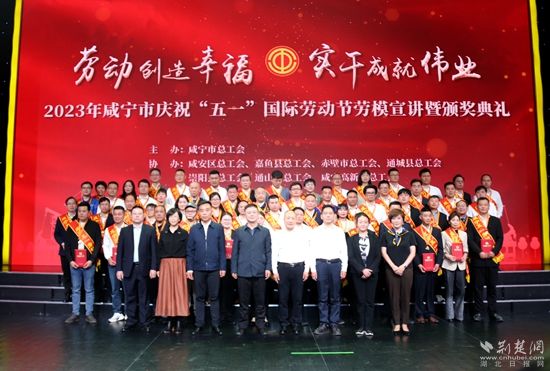 李志強(qiáng)(左三)榮獲咸寧五一勞動(dòng)獎(jiǎng)?wù)?。黃錚 攝