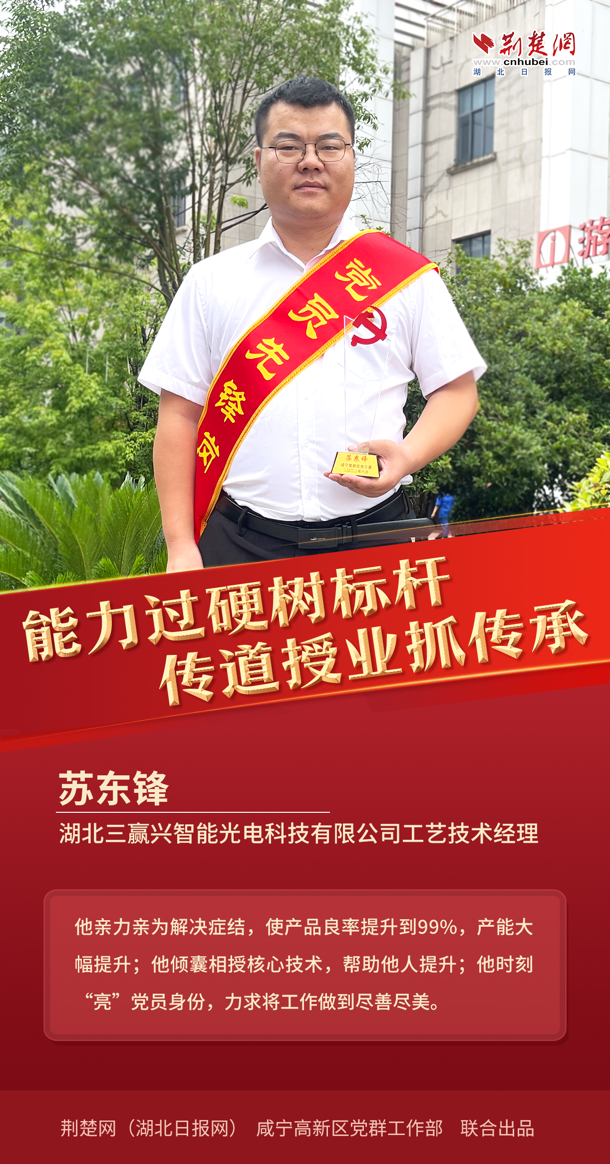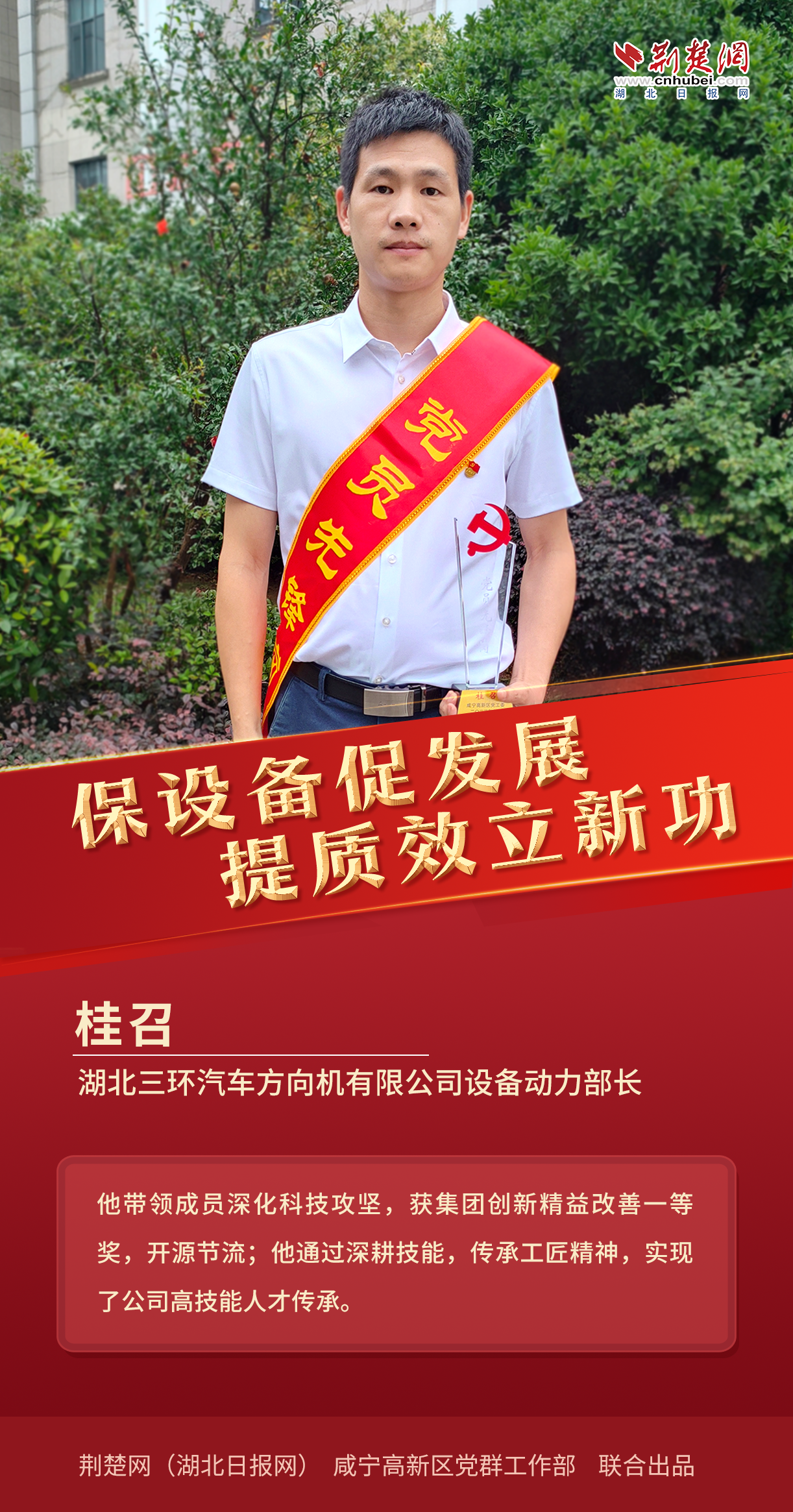 7月13日,記者從咸寧高新區(qū)獲悉,為激勵全區(qū)各級黨組織和廣大黨員學(xué)習(xí)典型、爭當(dāng)先進(jìn),奮發(fā)有為、建功立業(yè),高新區(qū)黨工委研究決定,授予桂召等10名同志“黨員先鋒崗”榮譽(yù)稱號,并要求全區(qū)上下以一往無前的昂揚(yáng)姿態(tài),在打造武漢都市圈自然生態(tài)公園城市,推動高新區(qū)高質(zhì)量發(fā)展中展現(xiàn)新作為、作出新貢獻(xiàn)。
