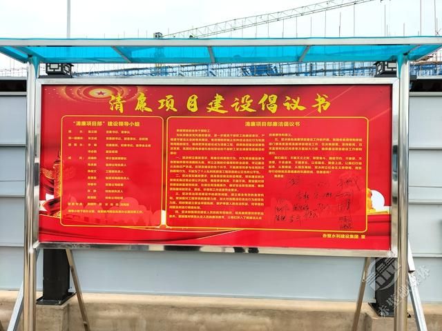 赤壁中試谷·智能無人系統(tǒng)測試基地赤壁市水建集團(tuán)項(xiàng)目部前的清廉項(xiàng)目建設(shè)倡議書的簽名板上,密密麻麻地簽滿了名字。一個簽名就是一份承諾,一個簽名就是一份責(zé)任,一個簽名就是水建集團(tuán)建設(shè)清廉國企的堅(jiān)實(shí)基礎(chǔ)。