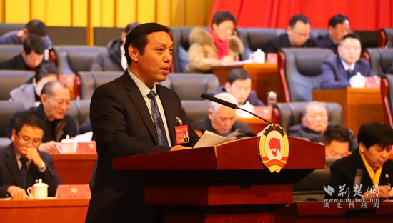 咸安區(qū)政協(xié)主席鎮(zhèn)權(quán)作工作報(bào)告。黃錚 攝