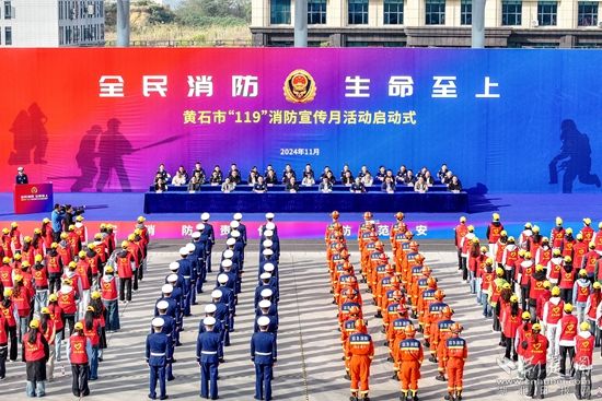 11月9日上午,黃石市2024年“119”消防宣傳月活動啟動式在市消防訓(xùn)練與戰(zhàn)勤保障基地舉行。